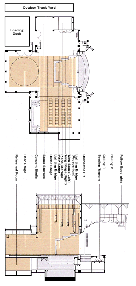 - Lighting bridge (proscenium), Lighting bridge 1,2,3, Lighting fly duct, Middle sky cyclorama light, Sky cyclorama light, Far sky cyclorama light, Open/close ground row light, Portal tower light, Sidelight batten, Proscenium sidelight, Front sidelight, Conductor light, Proscenium light 1,2 Ceiling light 1,2