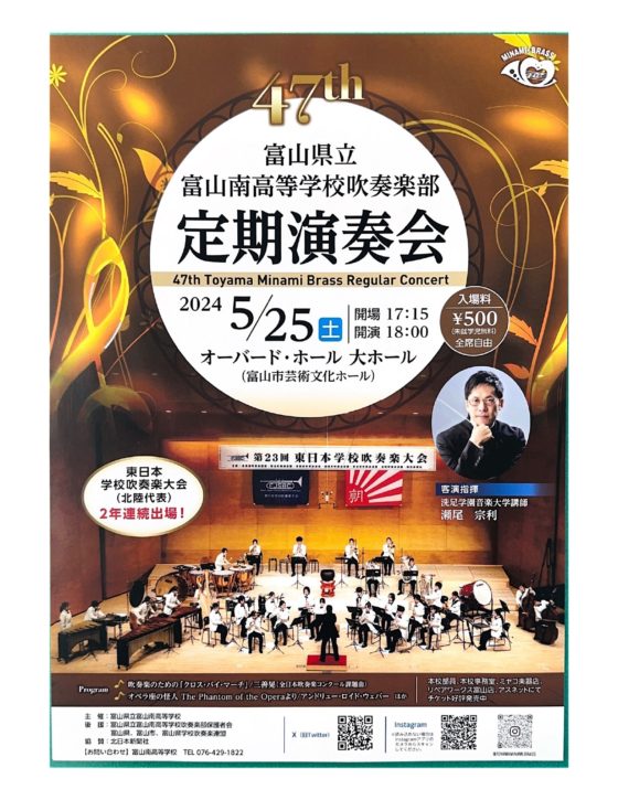 今年は洗足学園音楽大学の瀬尾宗利先生を客演指揮にお迎えし、吹奏楽曲から