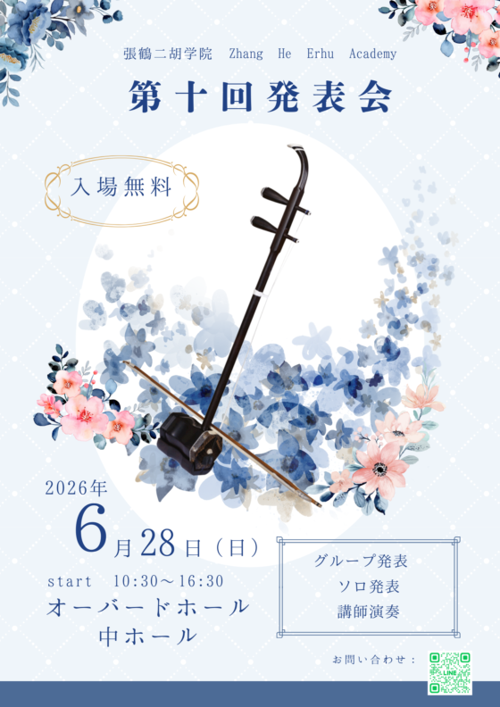 張鶴二胡学院は、このたび第10回発表会を迎えることとなりました。